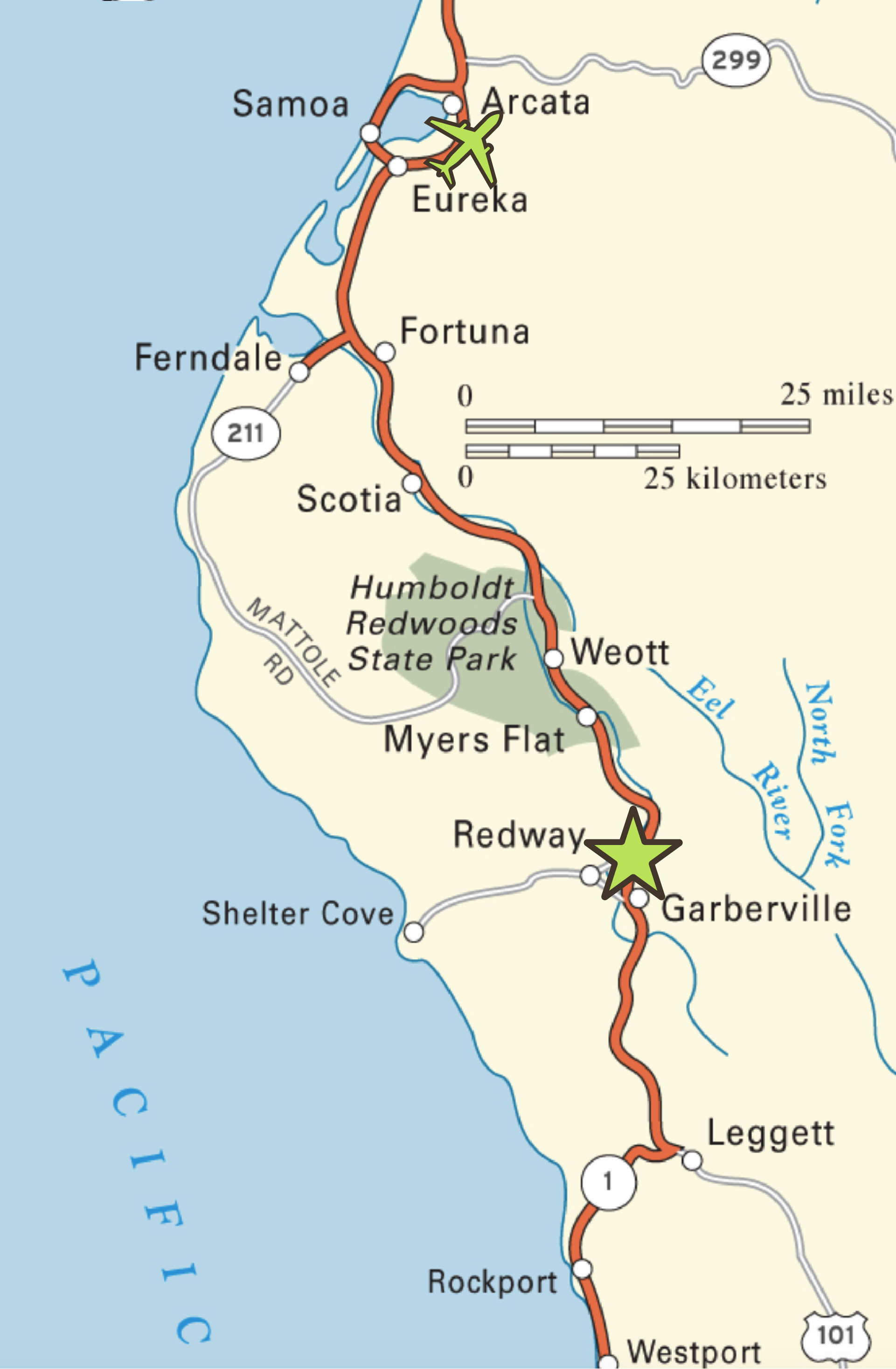 Arcata-Eureka Airport (ACV) – ~1.5 hours north of Redway